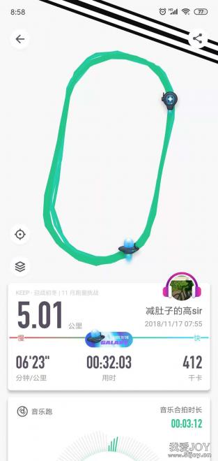 附下这次实测图,有点献丑了,跟大神4分5分配速不能比呀~~~这次跑步唯一达到我预期的是步频上了180哟!