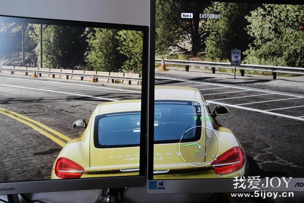 在游戏中两显示器表现色彩细节,看不出来差异,游戏不卡顿,不拖影,效果表现很满意哦。