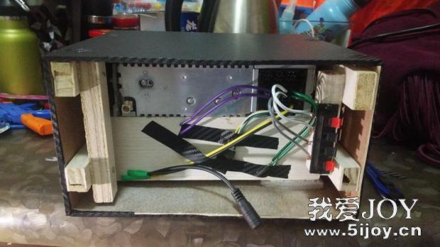 把四周都贴起来,后面的面板没做,我留空了,如果嫌不好看的话,淘、、宝上还有专业做好的车载CD后电路面板,用上后就很有范了。