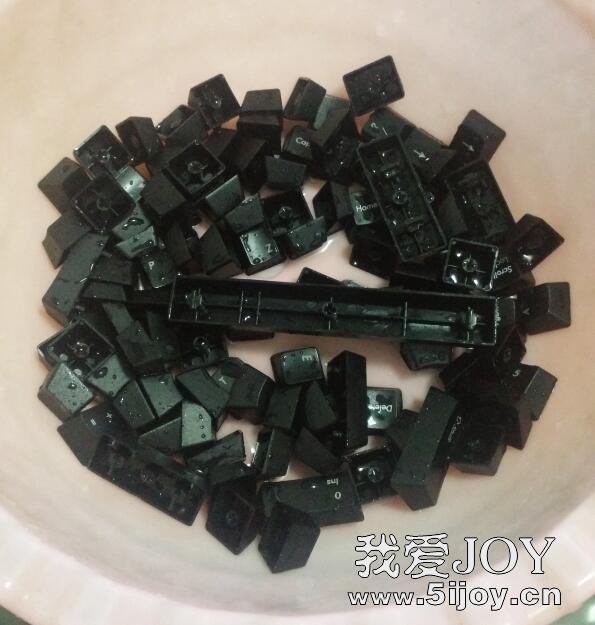 2、把下来的104个键帽进行清洗。牙刷和洗衣粉伺候。