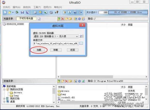 2、然后打开PE桌面上的虚拟光驱,光驱软件有很多种,下图示例其中的一种,目的都是一样的:将ISO文件挂载成光盘,免去解压文件操作,这样可以节省很多时间。